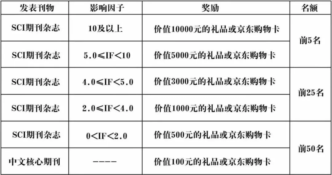 于2018年10月15日至2021年10月14日期间在中文核心期刊杂志或SCI期刊杂志发表文章,奖励额度依据文章发表时杂志最新的SCI影响因子,具体奖励如下: